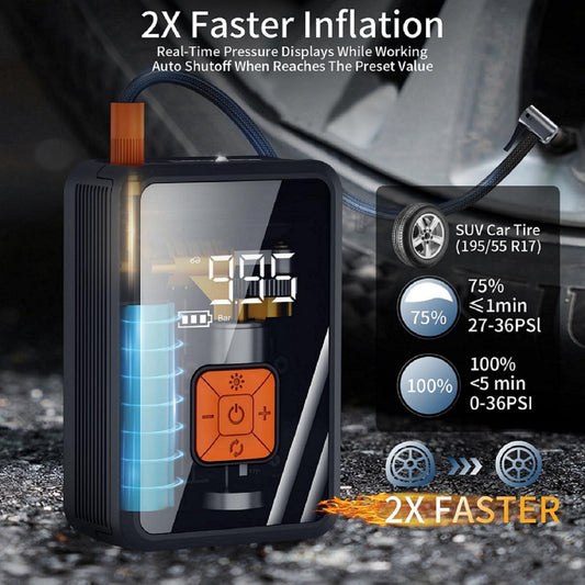 Tire Inflator Portable Air Compressor Cordless, 150PSI 6.5x Faster Portable Tire Inflator,Car Tires Air Pump with LED Lights&Digital Pressure Gauge,Auto Shut-off Smart Air Pump Suitable SUV,Truck,Bike