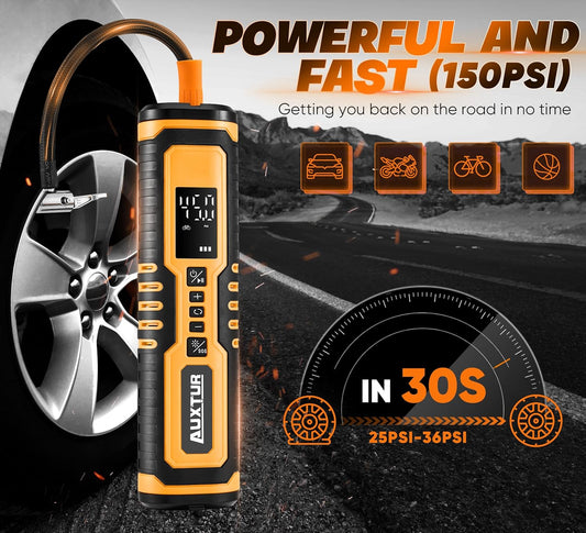 Tire Inflator Portable Air Compressor - Portable Air Pump for Car Tires 10000mAh 150PSI & 12V DC Cordless 4X Faster Inflation for Car, Motorcycle, Bike, Ball, with Digital Gauge, Dual-Use Type