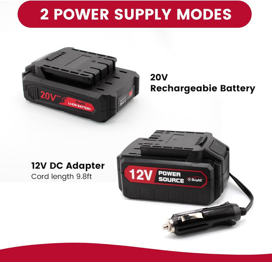 Tire Inflator Portable Air Compressor, 20V Cordless Car Tire Pump w/Rechargeable Li-ion Battery, 12V Car Power Adapter, Digital Pressure Gauge, 150PSI Tire Compressor for Many Inflatables