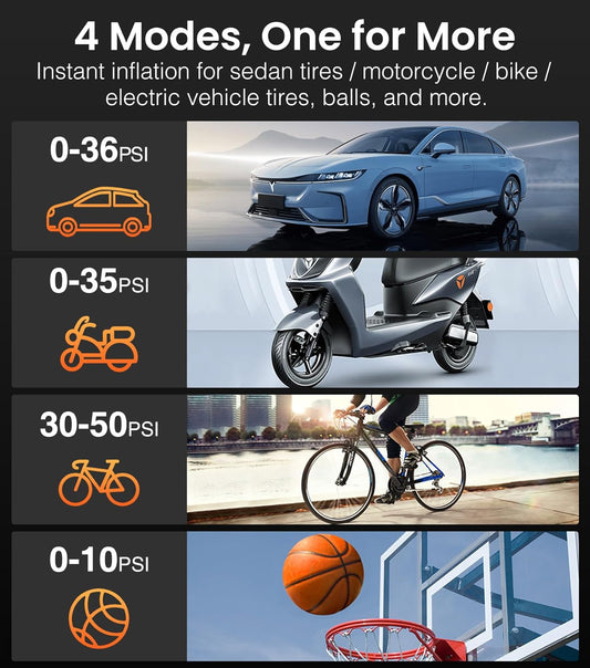 Tire inflator Portable Air Compressor, 150PSI Portable inflator for Car, Air Pump for Car Tires with Tire Pressure Gauge Tools, Smart Pump Tire inflator, Motorcycle & Bike