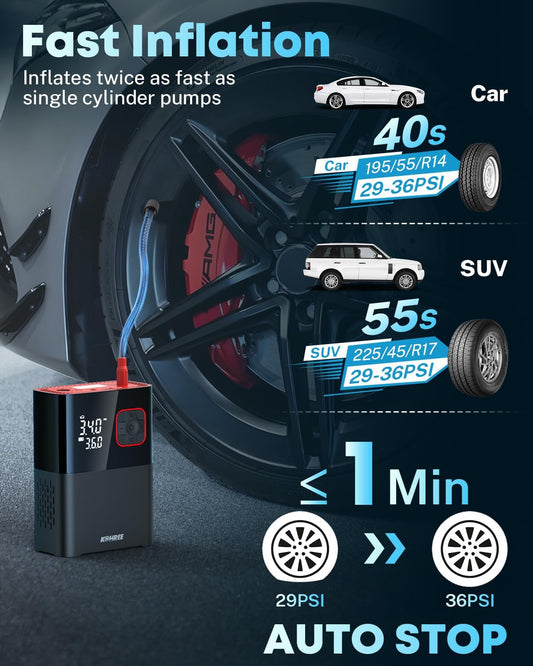 Kohree Tire Inflator Portable Air Compressor, 58LPM Faster Dual Cylinder Air Pump for Car Tires, Pickup Trucks & Large Tires, 150 PSI & 20000mAh Cordless Electric Air Pump with Pressure Detection