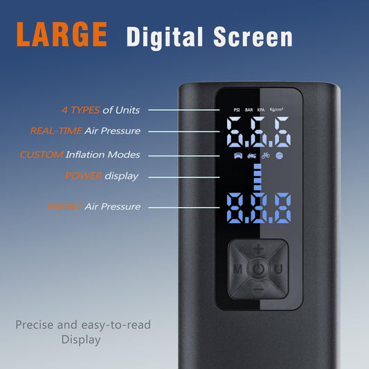 CARSUN Cordless Tire Inflator Portable Air Compressor,Car Tire Pump with Digital Dual Screen,150PSI Portable Air Pump for Car Tires with Deflation&Pressure Gauge,Suitable for Car,Motorcycles,Bicycles