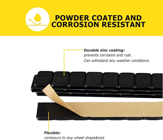 YIZBAP Wheel Weights Black 1/4oz 24 oz/Box, 96pcs, with Strong Black Adhesive. 0.25 Ounce Stick on Wheel Weights for Cars, Trucks, SUVs, Motorcycle, and Others