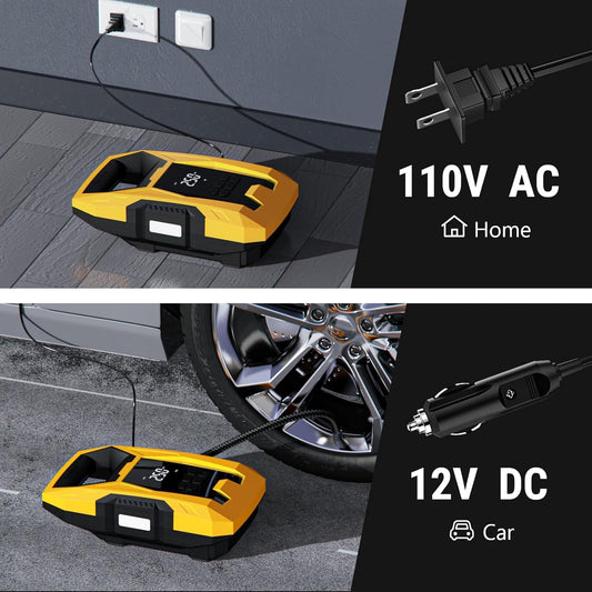 CARSUN AC/DC Tire Inflator Portable Air Compressor, Dual Power for Home 110V AC and Car 12V DC Air Pump with Pressure Gauge, Auto Shutoff, Tire Pump for Car Motorcycle Bicycle and Other Inflatables