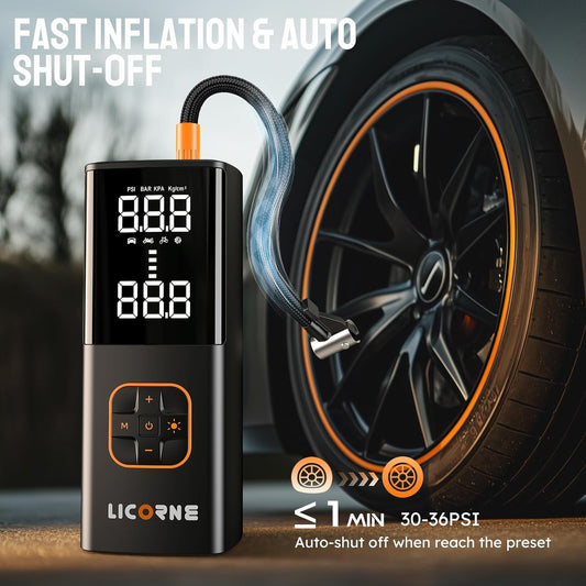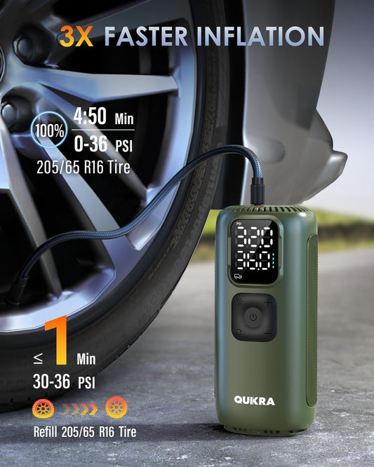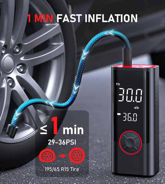 Tire Inflator Portable Air Compressor, 5X Faster Portable Air Pump for Car Tires with Powerful Battery, 180PSI Cordless Air Pump with Digital Pressure Gauge for Cars, Bike & Motorcycle Tires, Ball