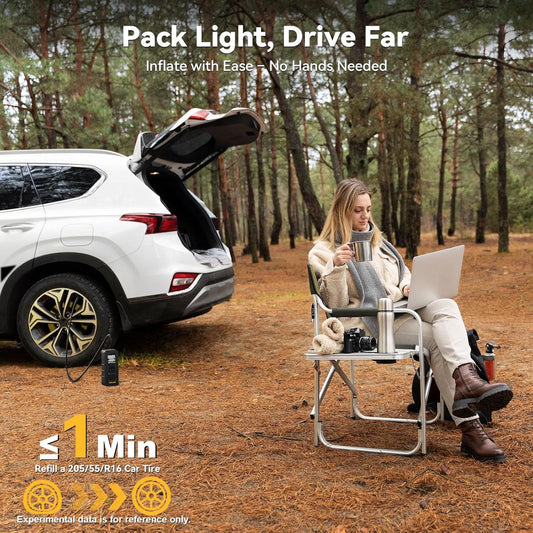Tire Inflator Portable Air Compressor, 150 PSI Air Pump for Car Tires, 6000mAh Battery (P108-150PSI-LED)