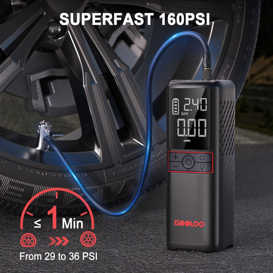 GOOLOO GT160 Tire Inflator Portable Air Compressor, 160PSI Portable Air Pump for Car Tires, 7500mAh Cordless Air Pump with Digital Pressure Suitable for Cars, Bikes, Balls, Motorcycles