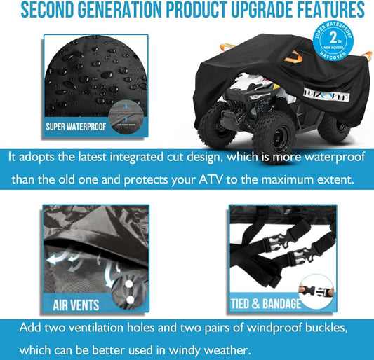 ATV Cover, Waterproof for Polaris Sportsman Yamaha Grizzly Honda FourTrax Kawasaki KFX Wheel Car with Air Vents Reflective Strips and Buckle Straps Length up to 83 inches