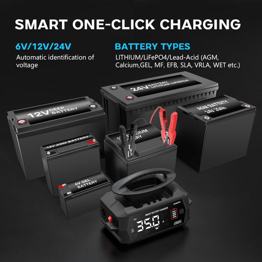 35 Amp Battery Charger, 6V/12V/24V Smart trickle Charger,car Battery Charger,Lithium, Lifepo4, Lead Acid (AGM/Gel/SLA...) Battery maintainer, desulfurizer, for:car, Boat, Motorcycle,Lawn mowers..