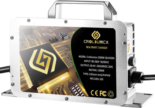 58.4Volt 20Amp Golf Cart Lithium Battery Charger LiFePO4 51.2V20A Matching 3-pin Round Plug Charges The Battery of ClubCar DS/Precedent Golf Carts 58V20A 51V20A 48V20A