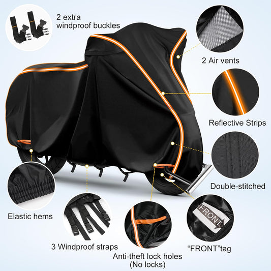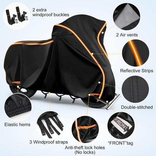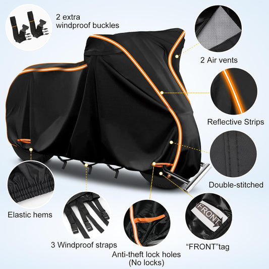 420D Motorcycle Cover for Harley Davidson Ultra Limited,Road Glide Limited,Gold Wing with Trunk Models Outdoor Bike Cover Windproof Heavy Duty Waterproof Protection Fits up to Motorcycles