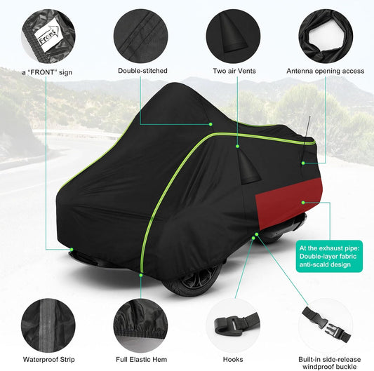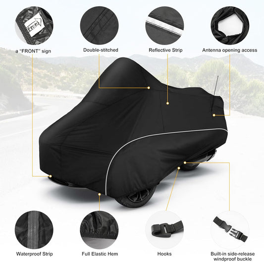 420D Motorcycle Cover for Trike Models Freewheeler, Tri Glide Ultra and CVO Version, Outdoor Bike Cover Windproof Heavy Duty Waterproof Protection(with Antenna Openings&Exhaust Heat Insulation)