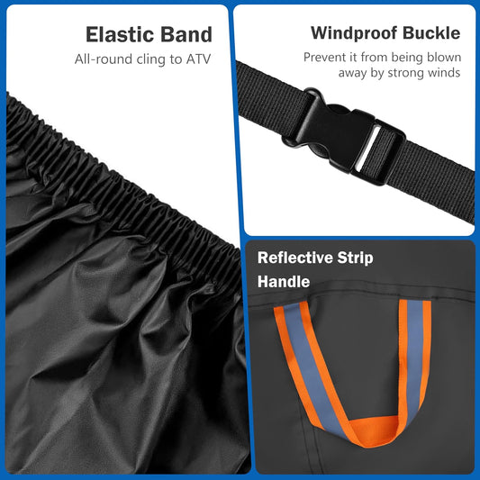 ATV Cover Waterproof for Polaris Sportsman Yamaha Grizzly Honda Kawasaki with Straps Reflective Storge Black 82x47x45 inch(XL)
