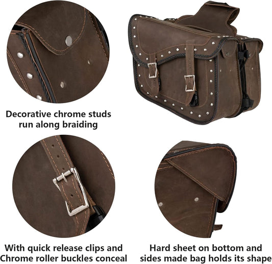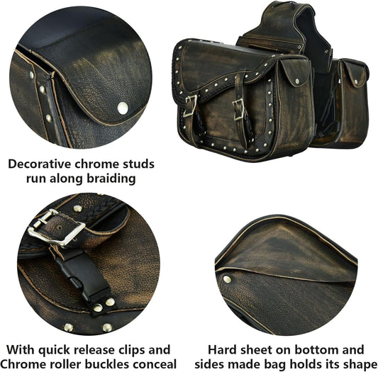 GARGOYLE BELLS Genuine Leather Motorcycle Saddle Bags Motorcycle Luggage Bag For Softails Sportsters Dyna ect
