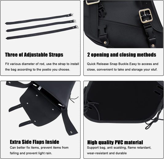 Motorcycle Saddle Bags Leather Motorcycle Solo Swing Arm Bag For Softails Sportsters Choppers Waterproof Side Bags (Black - Left Side, 11.5" x 10.25" x 3.5")