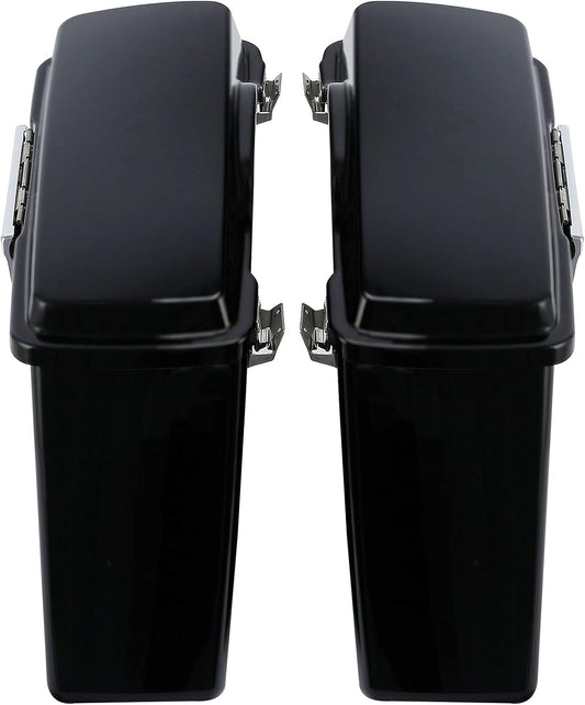 Green-L Vivid Black Hard Saddlebags with Chrome Latches Lock&Key Set Fit for Harley Touring Road King Street Glide Electra Ultra 2014-2024