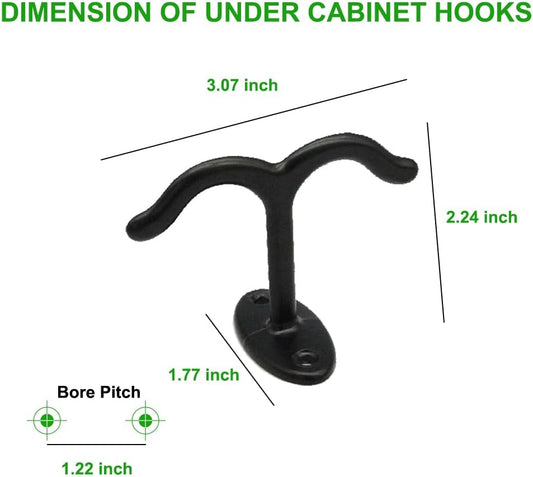 10 Pcs Zinc Alloy Ceiling Double Hook Cabinet Wardrobe Coat Towel Hat Hook Hooks Under Cabinet Shelf (Black)