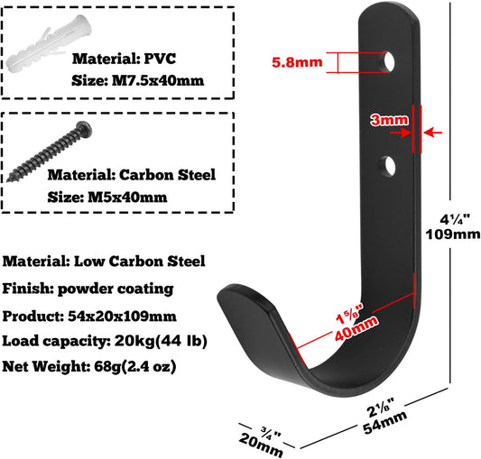 10 Pack Black Steel J Hook, 4-1/4" x 2-1/8" Wall Mount Utility Hook for Hanging Garage Storage