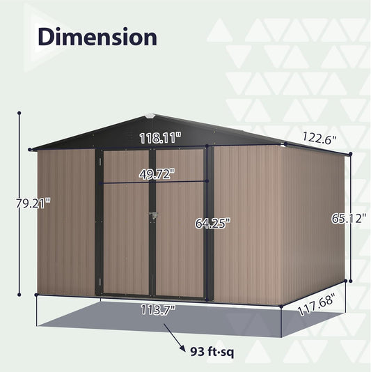 10 x 10 FT Outdoor Storage Shed, Large Metal Tool Sheds with Updated Frame Structure and Lockable Doors, Garden Shed for Backyard Garden Patio Lawn