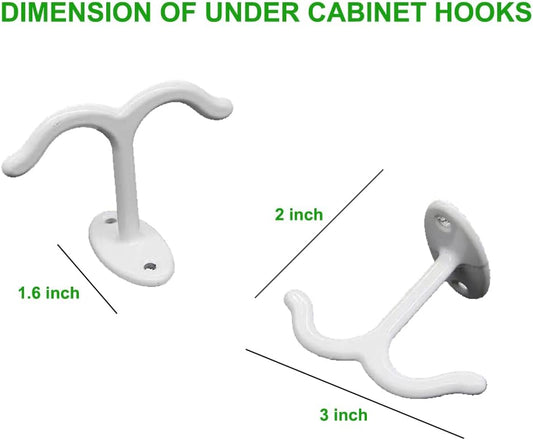 10 Pcs Zinc Alloy Ceiling Double Hook Cabinet Wardrobe Coat Towel Hat Hook Hooks Under Cabinet Shelf (White)