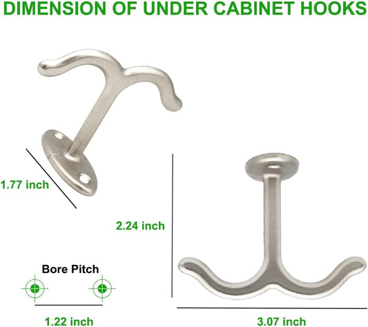 10 Pcs Zinc Alloy Ceiling Double Hook Cabinet Wardrobe Coat Towel Hat Hook Hooks Under Cabinet Shelf (Shiny Silver)