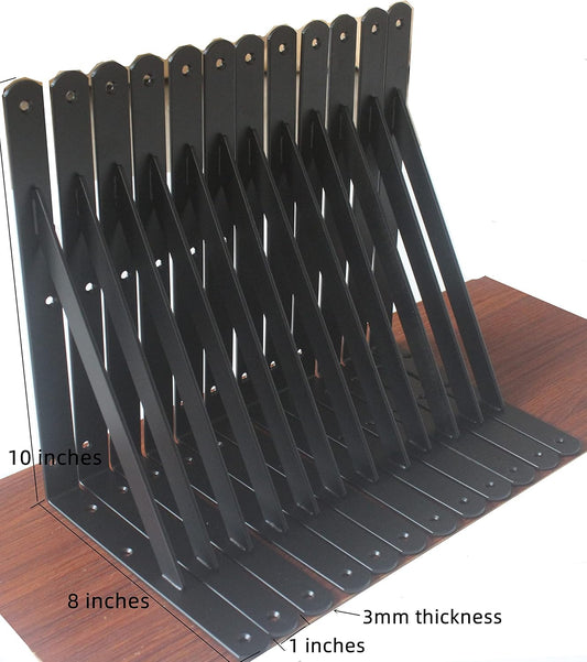 4 Pack L10 x H 8" Black Heavy Duty Shelf Brackets with Screws Metal Shelf Brackets Shelf Support Angle Brackets for Shelves L Brackets Heavy Duty Floating Shelf