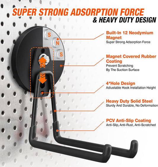4 Pack Large Magnetic Hooks Heavy Duty Extra Strong Magnetic Garage Hooks Big NdFeB Industrial Magnet Hooks Magnetic Utility Storage Holder Organization with Anti-Slip Coating for Hanging Garden Tool