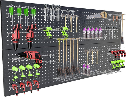 4 Pack Metal Pegboard Panels 24" x 12" Black Heavy Duty Steel Pegboard Wall Organizer, Garage Utility Tools Pegboard Storage System for Workbench, Shop, Shed Modular Peg Board Organizer Board Kit
