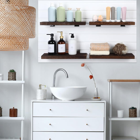 4 Pack Wooden Slatwall Shelf, 16.1" D x 6.7" W x 1.1" H Slatwall Shelves with Metal Hooks Organizer Set Mounted Accessories for Garage Home Workshop Workbench (Brown)