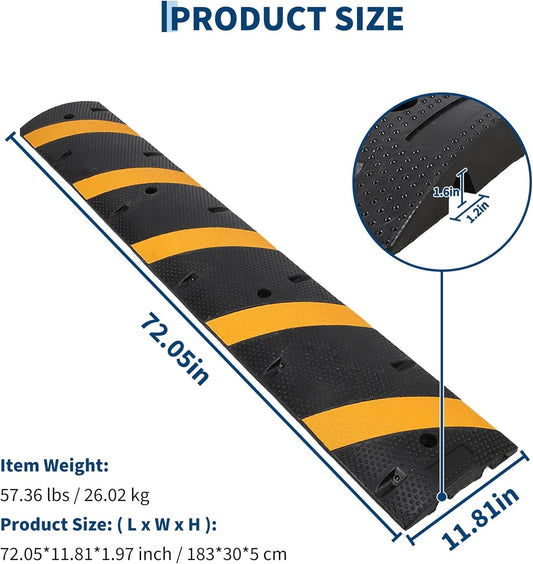 4 PCS 6FT Speed Bumps Wite End for Road, Heavy-Duty 25,000 lbs Capacity Traffic Rubber Speed Humps with 2 Channel Floor Cord Cover for Asphalt Concrete Gravel Driveway Road (4)