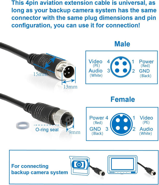 4 Pin Backup Camera Cable with Corrugated Tube Cover, 4 Pin Aviation Extension Cord, Weatherproof, Compatible with Rearview Camera Systems, Radar DVRs, CCTV Security Systems(33FT/10M)