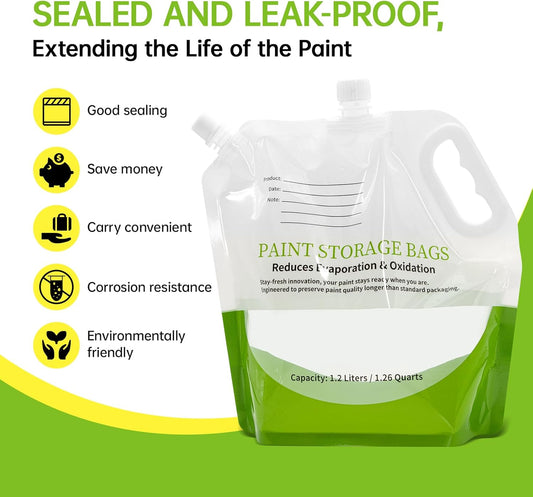 4 Pcs Paint Storage Pack Bags, 1.2L Reusable Paint Saver Bags with Funnel for Leftover Water Based Paint, Airtight Pouches for Easy Mixing & Dispensing for Home DIY Professional Painters