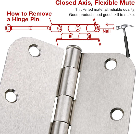 48 Pack Interior Door Hinges Brushed Nickel 3.5 Inch x 3 1/2" Rounded 5/8" Radius 3 ½"Satin Iron Bifold Residential Hinge for French Style Slab Single/Double Doors Hardware Kit Living/Bed Room
