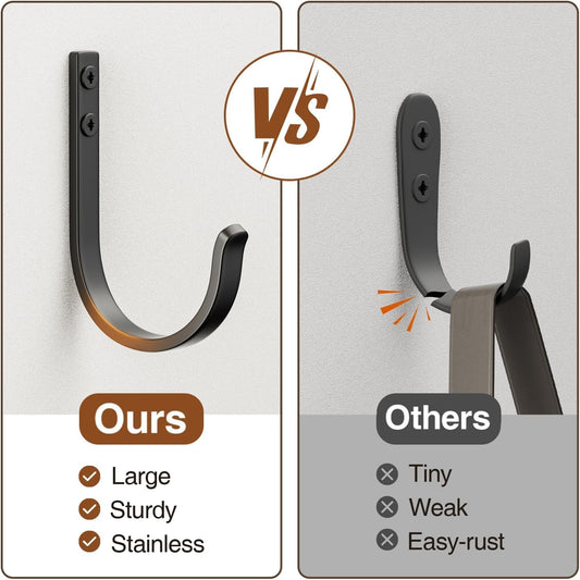 10-Pack Heavy Duty Garage Wall Hooks – Utility J Hooks for Hanging Ladders, Bikes, Garden Tools, Hose, with Anti-Slip Coating (Black*10)