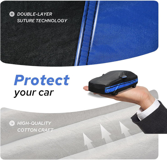 10-Layer Car Cover Waterproof All Weather for Automobiles, Universal Fit for Hyundai Accent, Mercedes C-Class, Toyota Corolla, Porsche 911/718, Sedan 168"-178" L, Size A3 (See Size Chart)