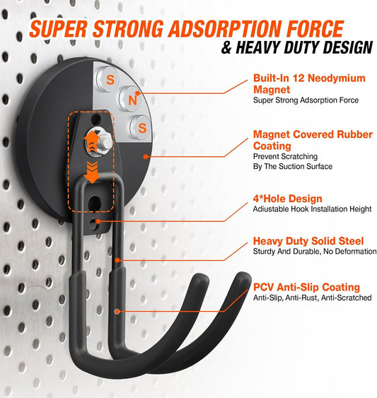 4Pack Large Strong Magnetic Hooks For Hanging Heavy Duty, 3.5in Neodymium Magnet Storage Utility Hooks, Industrial Magnet Hook Steel Long Magnetic Holder Hanger Organizer For Garage Garden Power Tools