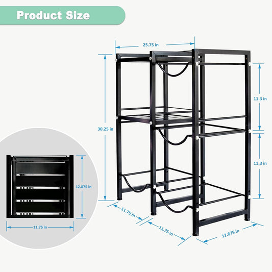 5 Gallon Water Jug Holder with 3-Tier Storage Shelves - Heavy Duty Stand with Fast Flow Spout - Fits 55mm Water Bottle - For Kitchen, Living Room, Office - Black