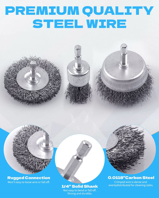 60 Pack Rocaris Carbon Steel Wire Wheel Brush Set - Cup, Wheel, and Pen Brushes With 1/4-Inch Hex Shank for Rust Removal, Corrosion and Scrub Surfaces