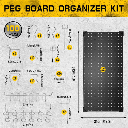 100PCS Pegboard Accessories Organizer Kit,Paper Towel Holder,Closet Organizers and Storage - Easy Storage and Organization for Garage, Workbench,Shelves,Tools.(12x24 Inch Panels with Hooks)