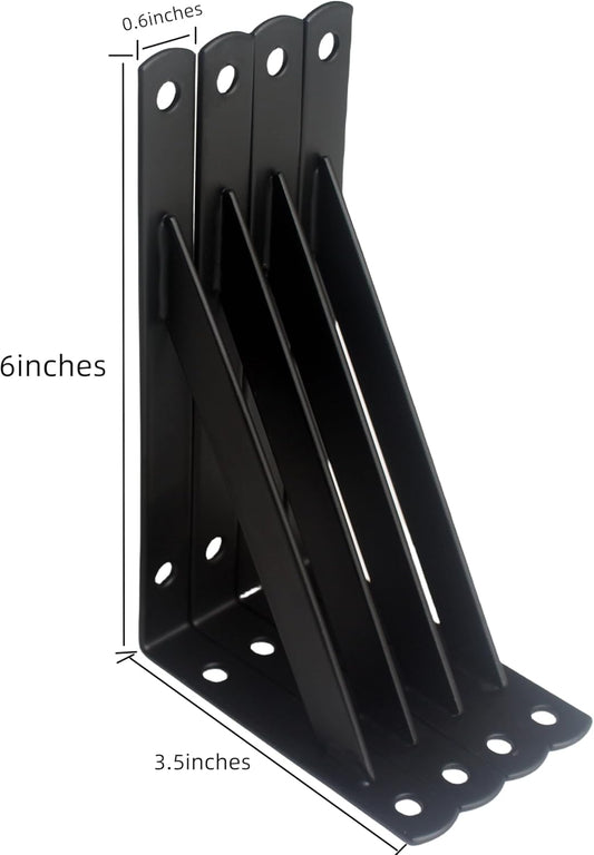 8 Pack L6 x H 3.5" Black Heavy Duty Shelf Brackets with Screws Metal Shelf Brackets Shelf Support Angle Brackets for Shelves L Brackets Heavy Duty Floating Shelf