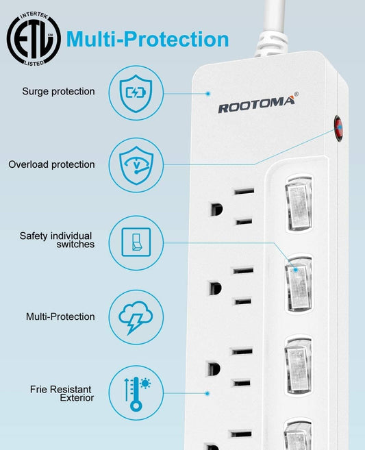 10FT Heavy Duty Extension Cord with Individual Switches on Off, 1875W Appliance Extension Cord with Surge Protector, 6 outlets, High Wattage for Microwave, Aquarium, Kitchen, Garage Must Have