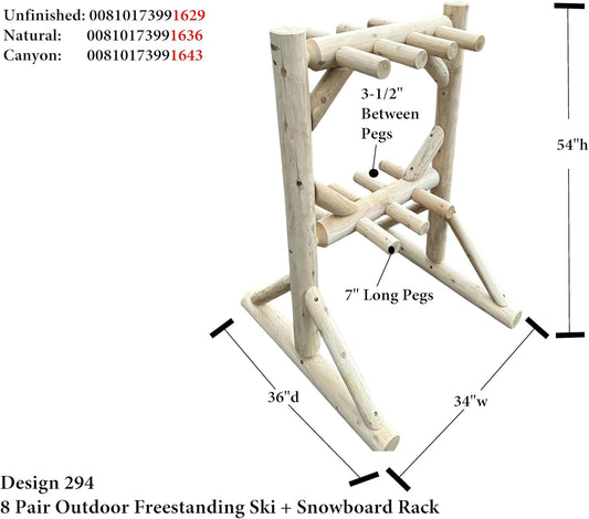 8-Place Freestanding Log Ski Rack Holder, Indoor & Outdoor Snowboard Racks, Standing Storage, Garage Racks for Snow Skis, Durable Snowboard Rack Garage Storage Organizer - Unfinished