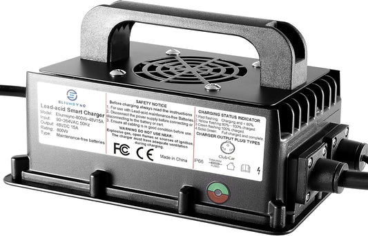 800W Lead Acid Battery Charger 48 Volt 15 AMP 3-Pin Round Plug Club Car Golf Carts