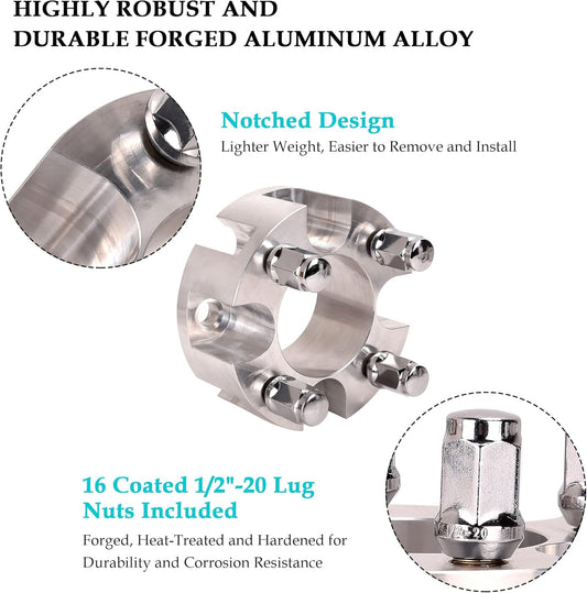 10L0L Golf Cart 2 inch Wheel Spacers for Yamaha, EZGO, Club Car (4x72mm Bolt Pattern, 68mm Hub Bore, 1/2-20 Studs) 4 Pack, Silver