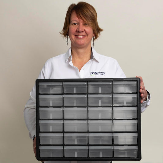 Akro-Mils 24-Drawer Plastic Drawer Storage Cabinet for Garage Organization, Bead Organizer, Building Bricks Storage, Teacher Toolbox, Makeup Organizer, 20-Inch W x 6-Inch D x 16-Inch H, 10124 Black