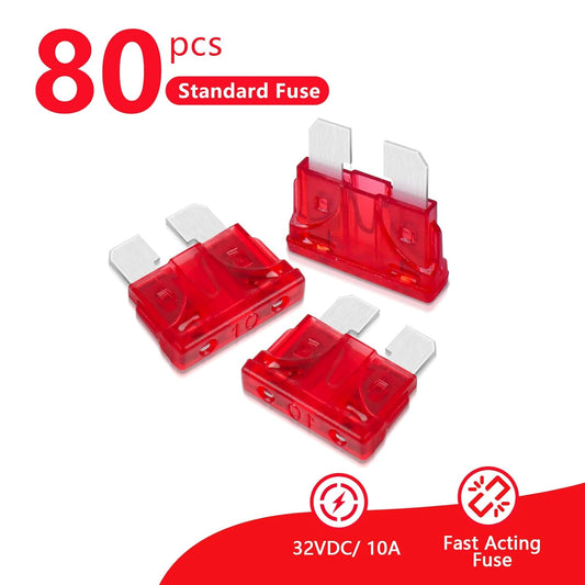 (80Pcs) 10 Amp Standard Fuse, 10A Car Blade Fuses for Car/RV/Truck/SUV/Motorcycle/Boat