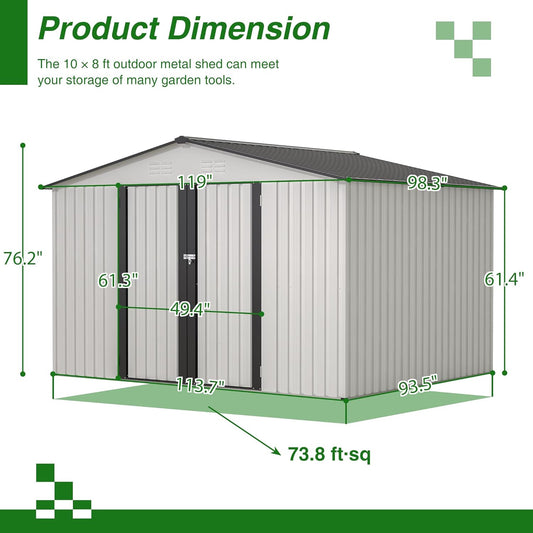 10X8 FT Outdoor Metal Storage Shed with Lockable Door & Floor Frame, Heavy-Duty Garden Tool Shed, Weatherproof Steel Utility Shed for Backyard, Patio, or Lawn Organization