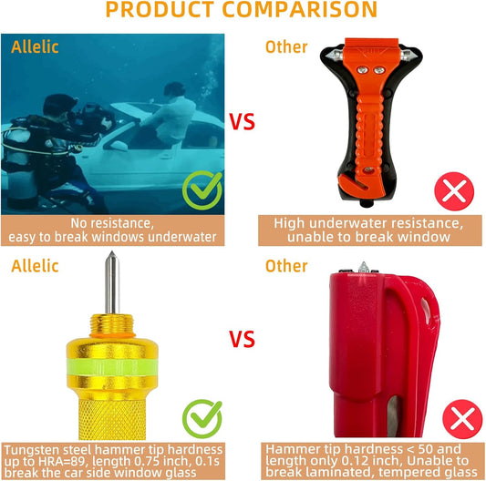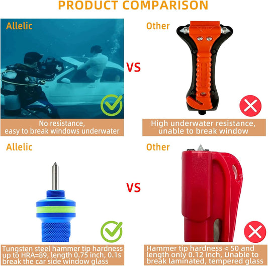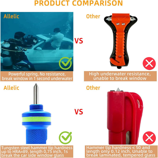 Allelic Car Window Breaker Tool, Window Breaker Seatbelt Cutter, Window Breaker, Glass Breaker, Spring Loaded Window Breaker for Land & Underwater (Blue)