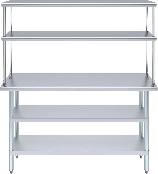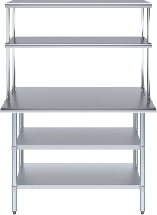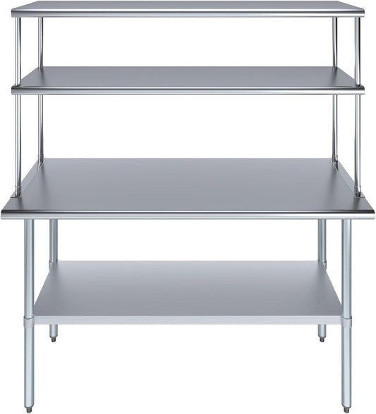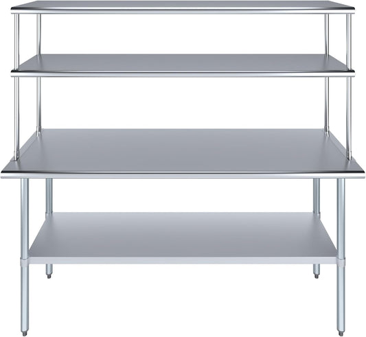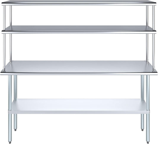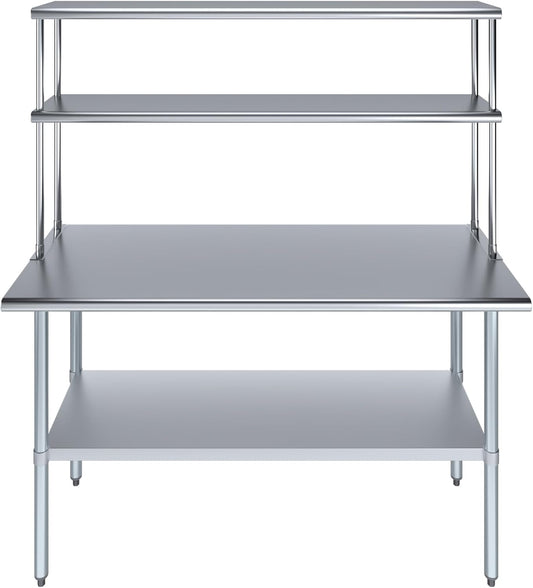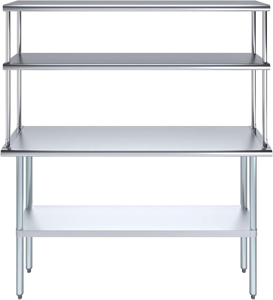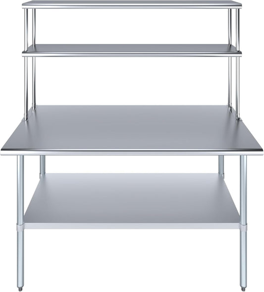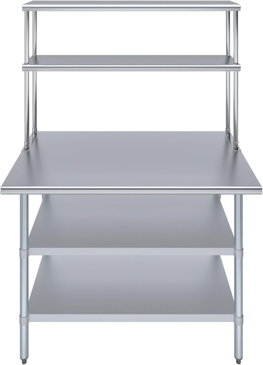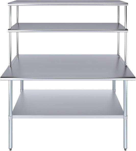 Amgood Stainless Steel Work Table Double Tier Overshelf | NSF 14" x 48" Work Table + 12" Overshelf
