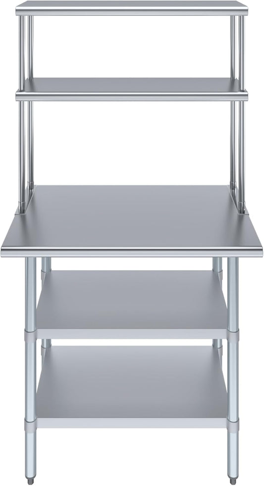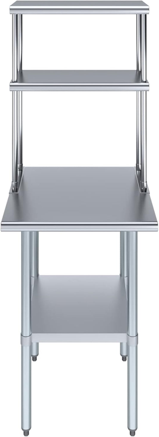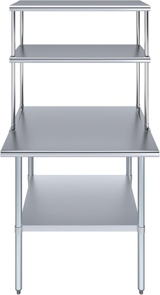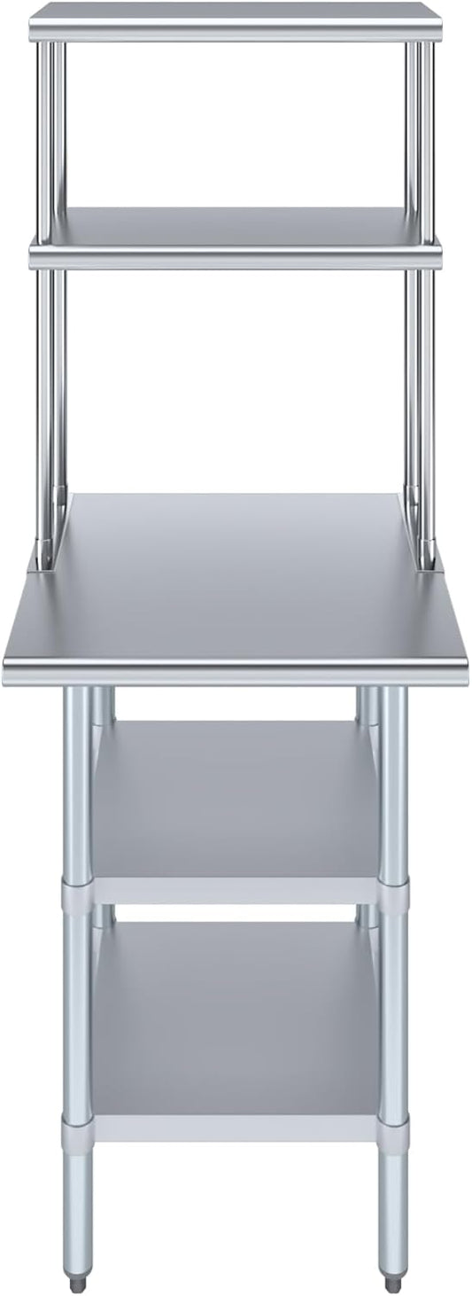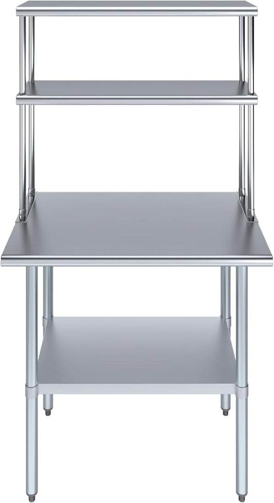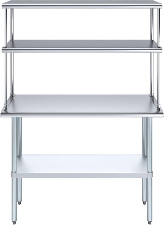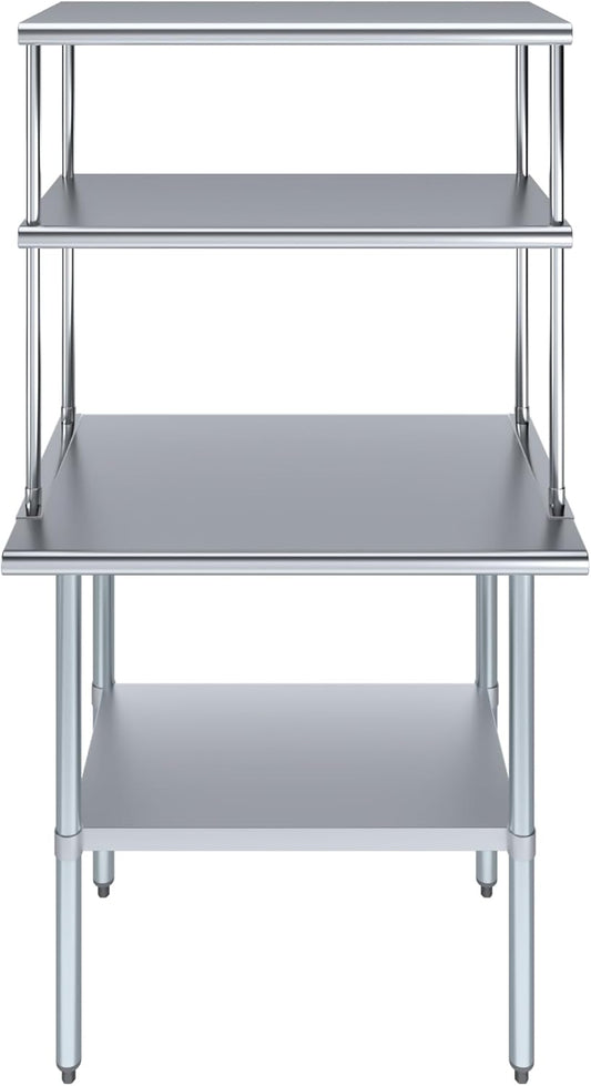 AmGood Stainless Steel Work Table Double Tier Overshelf | NSF (24" x 36" Work Table + 12" Overshelf)